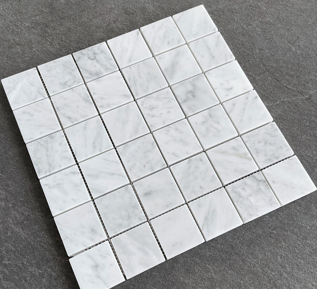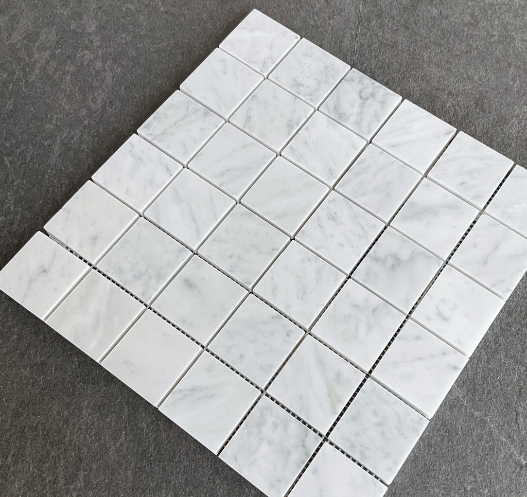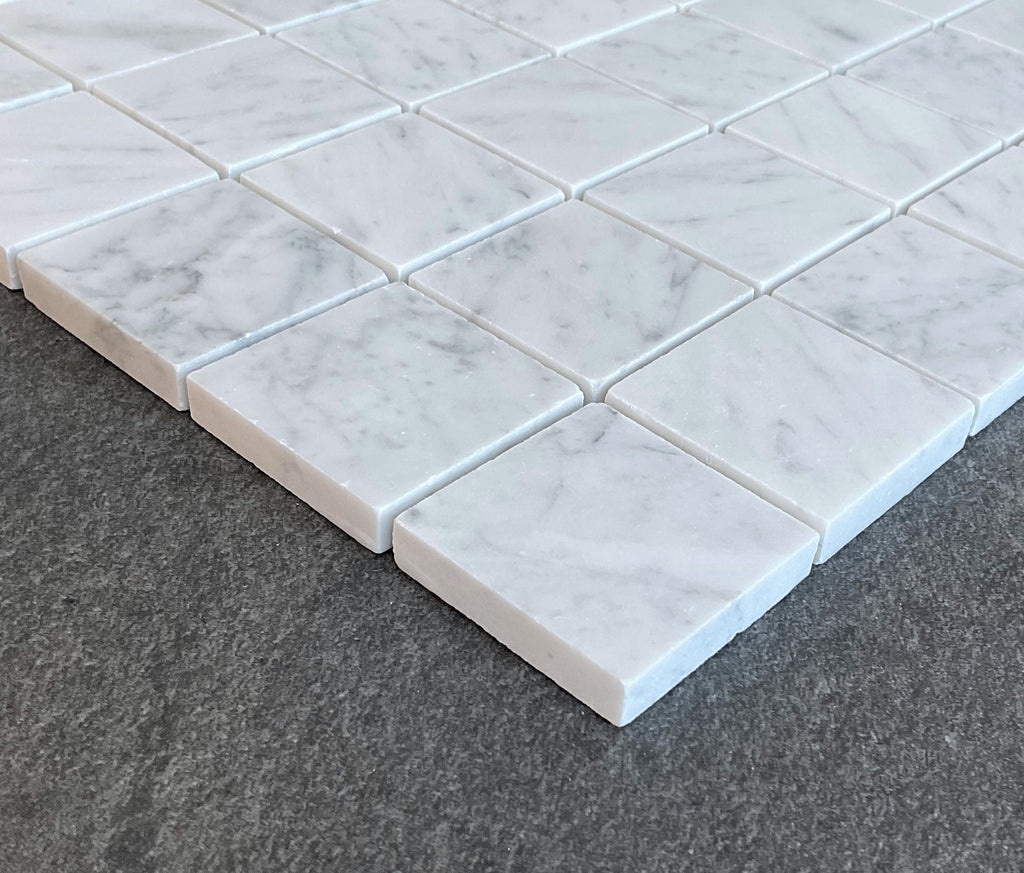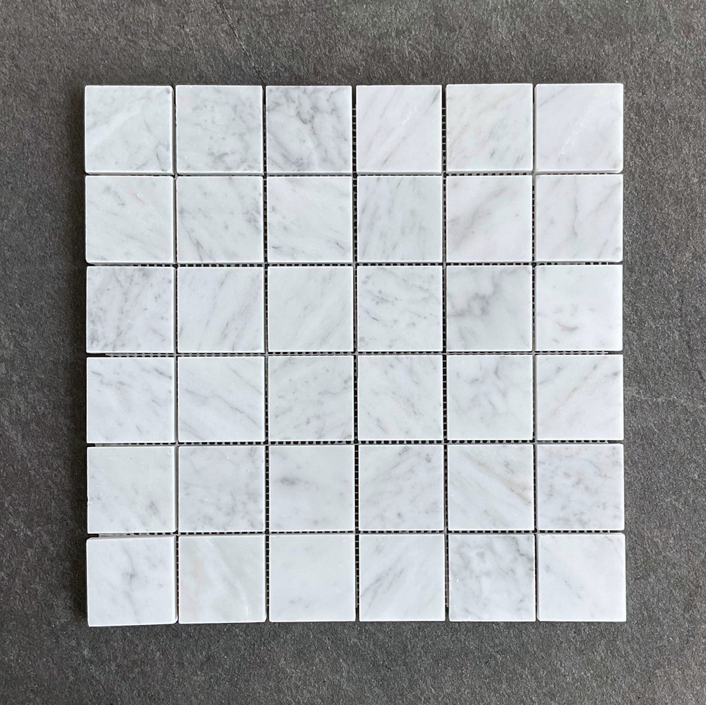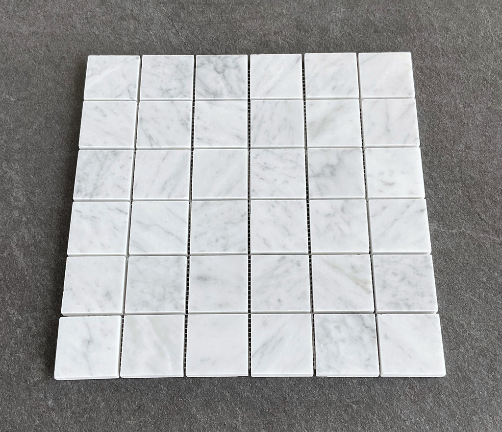 White Carrara 2" x 2" Grid Natural Marble Wall & Floor Mosaic Tiles (Honed)